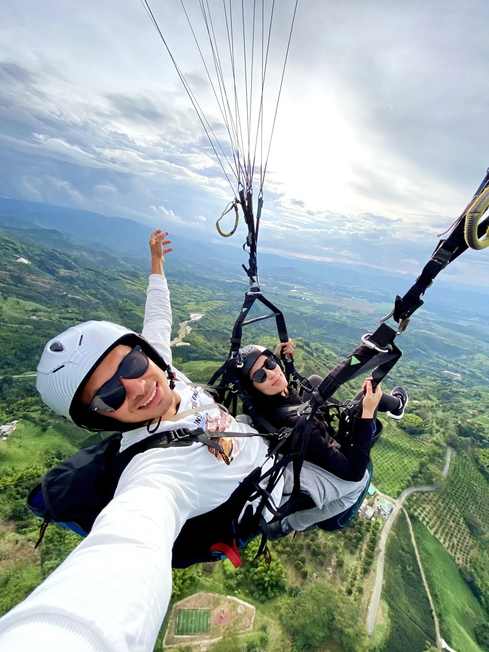 Curiosamente, el vértigo desaparece al despegar. El vértigo es una sensación de referencia visual desde un punto fijo (como un balcón). Al estar en el aire, sin conexión con el suelo, el cerebro no procesa esa sensación. La mayoría de nuestros pasajeros con vértigo terminan el vuelo encantados.